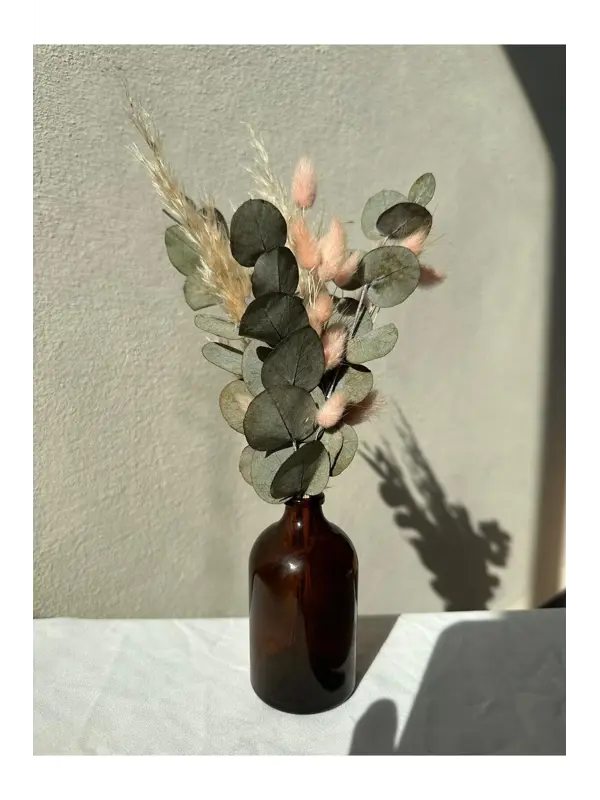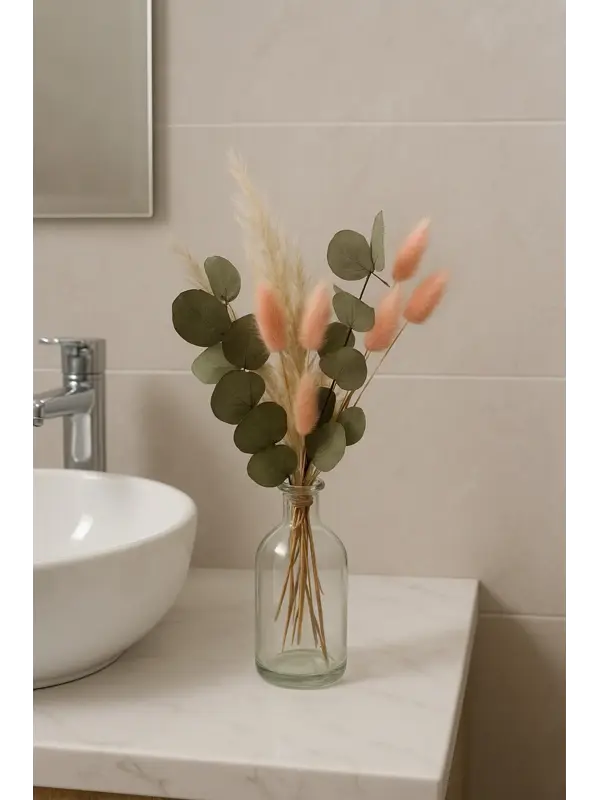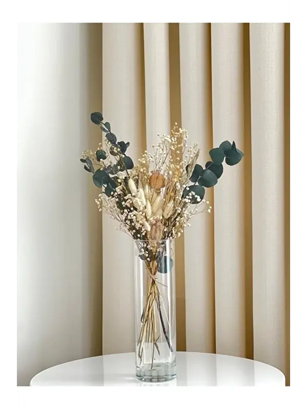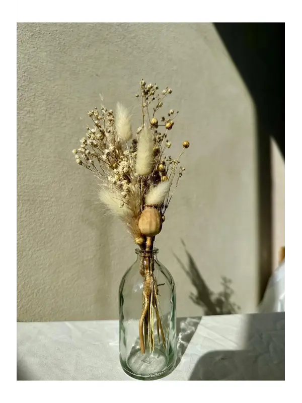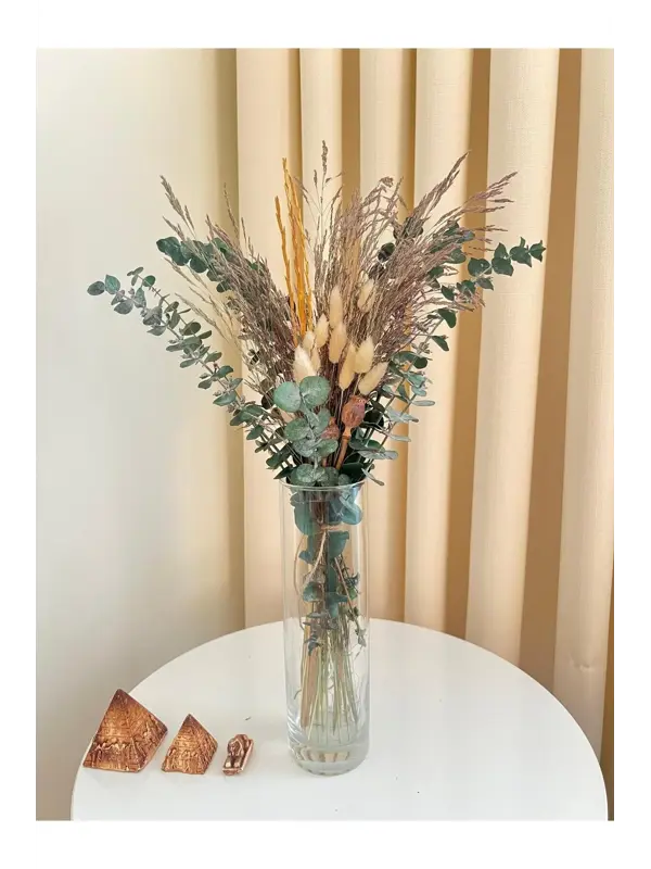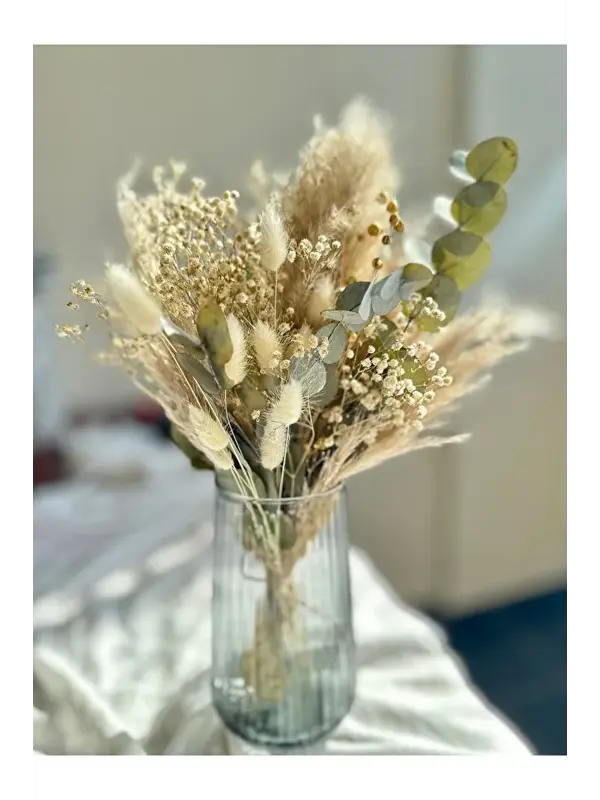 Mabeya Cam Vazoda Kuru Çiçek Buketi, Banyo, Yatak Odası, Bohem Ev Dekorasyonu, Aranjmanı (Vazo + Çiçek)