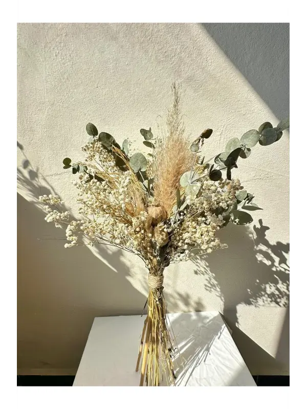 Mabeya Dekoratif Kuru Çiçek Buketi, Aranjmanı, Pamuk Otu, Vazoluk, Dekorasyon, Gelin, Dış Çekim Buketi