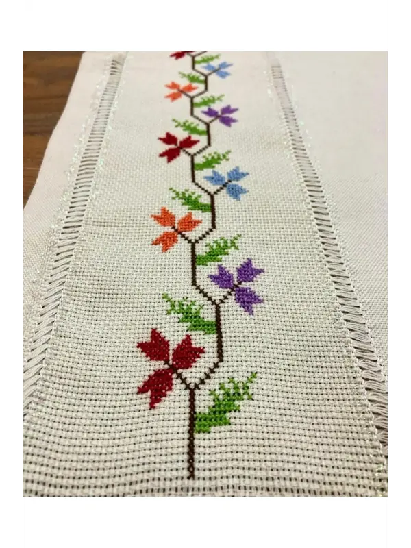 Mabeya El Yapımı Etamin İşlemeli Keten Runner Çeyizlik